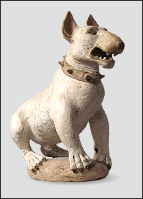Такой исторический посыл и напор самой идеи сделал работу Екатерины Яковлевой исключительно брутальной. Отсюда и диктат цвета: бультерьер «побелен» ангобом, нет цветных добавок в глину. Нет декоративности, т.к. не ускользают из внимания скульптора два исторических корня породы – бульдог и белый английский терьер. Здесь проскальзывает влияние анималистики 19 века, когда внешний вид в изображении животных становился главнее эмоций.