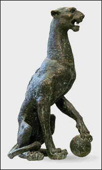 Леопард – символ неустрашимости, свирепости и выносливости. Пятна леопарда напоминают глаза, за что это животное называют неусыпным стражем. В скульптуре Екатерины Яковлевой слово «страж» имеет еще один смысл. Известно, что в восточных странах изображение леопардов имело сакральный смысл. В Древнем Китае они охраняли людей от напастей. Они не имели права спать ни днем, ни ночью. А для проверки их бдительности леопардам подкладывали под лапы в виде опоры шары, чтобы узнать, спит зверь, или же сторожит покой своего хозяина. Если шар вдруг выкатывался из-под зверя, значит, тот слыл не самым верным стражем.