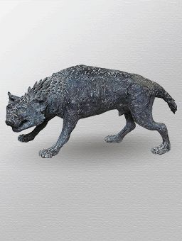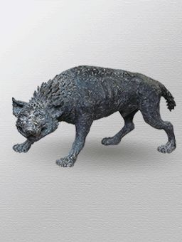 Нужно взять на себя смелость, чтобы изобразить – да еще так брутально – хищника-падальщика. Художница идет на определенный не только творческий, но и психологический эксперимент, если вспомнить высказывания античных писателей, судивших гиен за их коварность и трусость, за жадное терзание падали и демоническое подсмеивание. Пожалуй, самая «мужская» работа этого скульптора – в выборе фактуры, пластики, материала, силуэта и характера. Автор демонстрирует пластические возможности бронзы. Яростное мощное тело гиены «посажено» на тонкие лапы, но оно не теряет равновесия. Художница избегает анатомического изображения хищника, но сохраняет яркую сущность гиены.