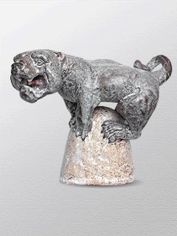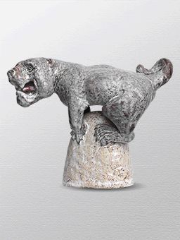 Дикость может быть с эффектом карамели. Именно такое визуальное восприятие возникает, глядя на эту фактурную работу, выполненную в технике «кракле». «Мраморность», которой добивается скульптор в изображении дикого кота и горы, делает композицию мягко-декоративной. Но только по форме. По содержанию, кот все тот же – животное-бестия, со сказочной харизмой.