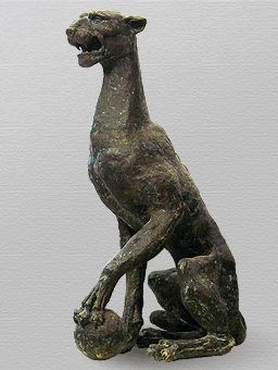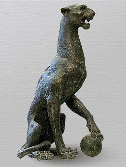 Скульптура выполнена в стиле бестиарности, в которой живут рядом естественнонаучные и художественные начала. В работе – яркая аллюзия взаимоотношений человека и животного в древности. Шар - не игрушка в лапах леопарда, а знак его мощи. Отсюда и неклассическая поза фигуры хищника - зверь сидит, а не лежит.